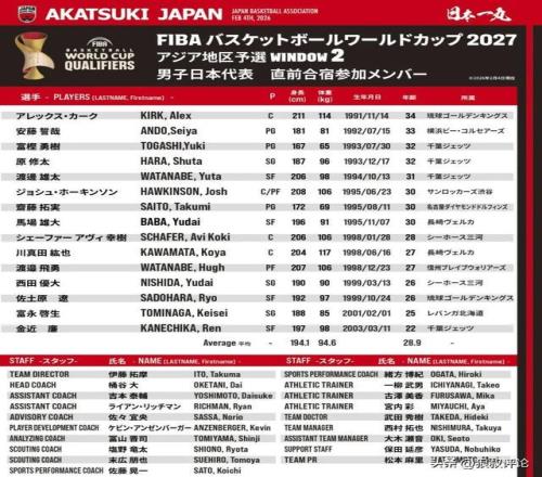 日本男篮集训名单如下: