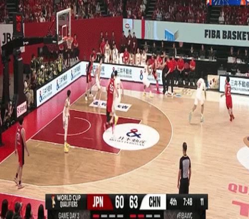 逼迫防守抢断贺希宁反击上篮得分!中国男篮65-60日本