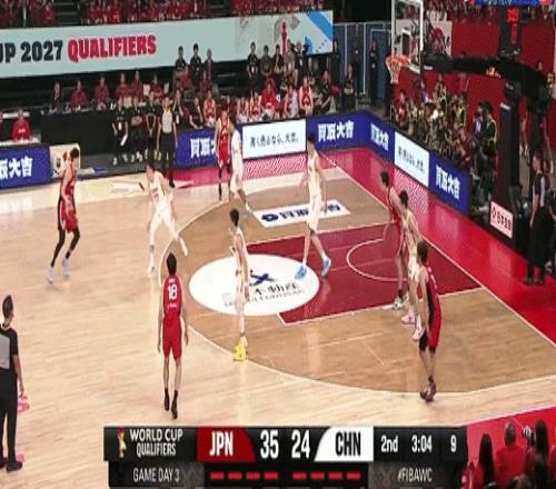 高诗岩借掩护三分追平比分!中国男篮49-49日本