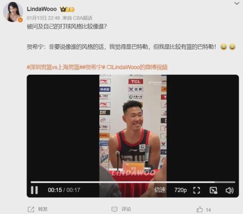 对了,贺希宁有国产巴特勒之称,两人都有强硬的比赛风格、出色的防守态度、无比疯狂的自律,以及关键时刻的拼搏精神等等。