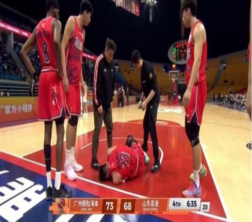 广州反击,郭艾伦持球推进,对抗中左膝突然一软,整个人直接倒在场上。他捂着左膝,久久没有起身,表情痛苦到变形。比赛进入暂停,队医冲进场内观察情况,随后担架车驶入场地。