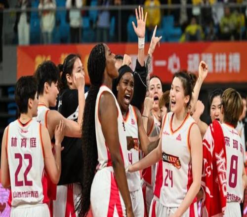 ▲山西女篮姑娘们围在一起欢呼胜利