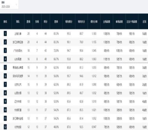 CBA排名又乱了!上海杀回第一,广东双杀深圳,辽宁4连胜卷土重来