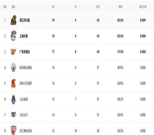 本赛季常规赛排名预测,上海队第1、浙江广厦队第2、广东队第3、北京首钢队第4,辽宁队在完成补强后大概率可以回到前8,但是想要进入季后赛四强几乎不可能。广东队和辽宁队想要在季后赛里走得更远,不仅需要实力,还需要一些运气。