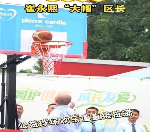 不过,笑归笑,闹归闹!在给区长送出“大帽”之后,崔永熙似乎也是感到了有一些不太对,于是,接下来,就直接“放水”,让区长有了一个空篮的机会,我们可以看到,这位区长也是技术了得,在无人的防守下,轻松将篮球打进……于是,大家也是开心地送出了点赞的掌声!