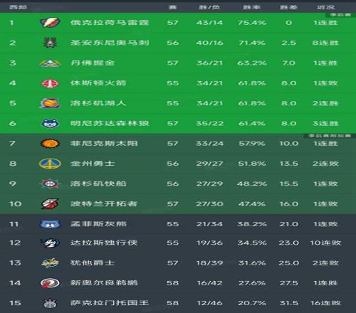 西部最新积分榜