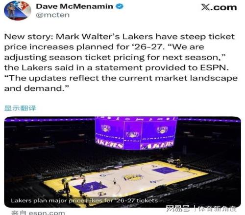 嘿,各位球迷朋友们!今天NBA圈里可炸开锅啦,知名记者Dave McMenamin就像个爆料大侠,甩出一篇猛文,说马克·沃尔特掌舵的湖人队,打算在2026 - 27赛季给票价来个大变身,直接“坐火箭”!