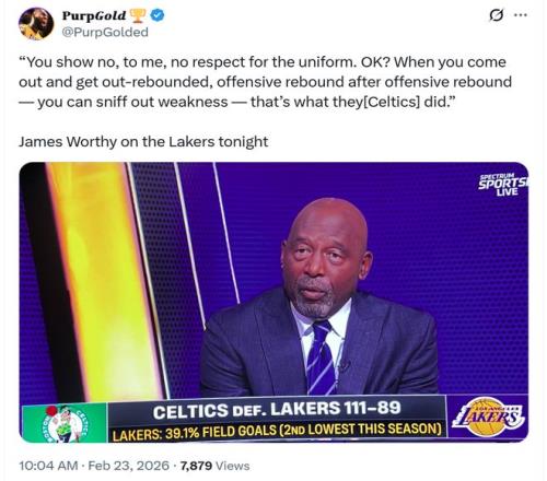 作为解说嘉宾的湖人名宿沃西更是一针见血的指出:“你们没有表现出对紫金军团球衣的尊重,一次又一次被对手抢下前场篮板,这让他们嗅到了你们的弱点。”