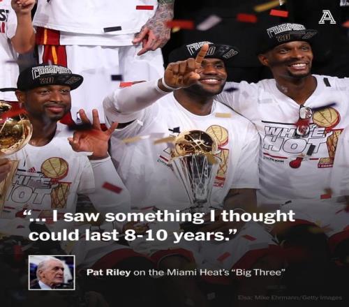 在洛杉矶湖人为帕特·莱利揭幕雕像后的新闻发布会上,莱利回顾了自己执掌热火打造的“三巨头时代”。那段时期...