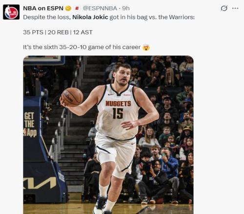 3.约基奇生涯第六次单场35+20+10;