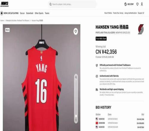 无独有偶,就在“杨瀚森玻璃杯之夜”活动发布不到24小时后,开拓者再次发布一项商业决定:为了庆祝农历马年,开拓者将在官方商城限量发售杨瀚森中文铭牌球衣。根据效果图显示,这款球衣背后是书法书写的杨瀚森中文名。关于这款球衣的售价,目前还没有公布,但价格绝对不会低。杨瀚森夏季联赛的球衣售价是238美元,折合人民币是1641元,常规赛球衣分球迷版和球员版,球迷版售价是1059元,球员版售价是1863元,比东契奇、詹姆斯的球员还贵。