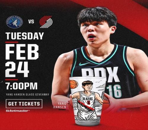 但随后开拓者的一个决定,让大家看到了他们火速找回杨瀚森的原因。就在今天,开拓者宣布,球队将在下一场主场对阵森林狼的比赛中举办“杨瀚森玻璃杯之夜”。这是个什么活动,开拓者介绍说,是指前5000名到场的观众,将获得一个杨瀚森的纪念玻璃杯。同时开拓者官网和现场也将上售卖同款玻璃杯,售价是6.99美元。