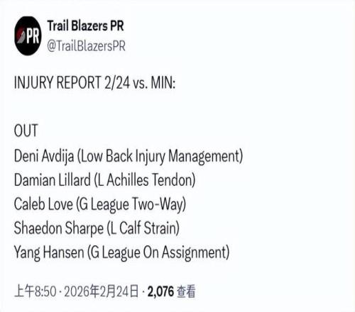 北京时间2月24日,根据开拓者的最新伤病报告,杨瀚森明日将继续出战G联赛,代表混音队再战圣克鲁斯勇士。开拓者官方也连续宣布了两项与杨瀚森相关的活动。