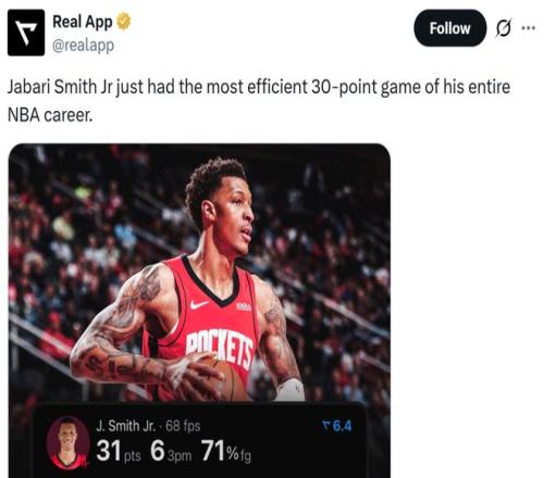 对于严重缺乏投射威胁的火箭队来说,小贾已经成为球队赢球风向标,本赛季当他拿下30+得分表现时火箭队3胜0负保持不败。