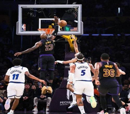 末节魔术队多点开花,成功实现反超。湖人队在后半段发力追赶,4分42秒拉拉维亚三分命中,追到98-98平,魔术请求暂停。暂停回来双方在场上陷入僵持,最后6.7秒卡特关键补篮命中,魔术队110-109领先湖人队1分。湖人暂停后东契奇将最后一投机会给了詹姆斯,詹姆斯高难度出手不中,湖人109-110惜败。