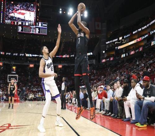 下半场易边再战,第三节上来火箭防守松懈,进攻也不准,国王一波13-4的小高潮,乌度卡暂停。但暂停以后,火箭进攻战术就是给杜兰特单打,阿杜连得5分止血,国王还在继续追分,分差回到16分以后,奥科吉底角两记三分重新拉开到22分,国王暂停。不过暂停以后,火箭继续拉大领先优势,三节结束108-76领先32分。
