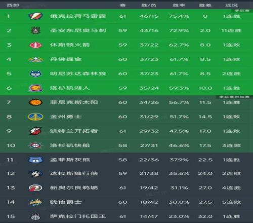 北京时间3月1日,今天的NBA常规赛已经结束了所有比赛,我们看看西部的最新排名!今天出战比赛的西部球队有火箭、湖人、勇士、开拓者、鹈鹕和爵士!