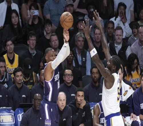 下半场易边再战,第三节上来国王打了一波9-4,威少上篮追到只差10分,湖人暂停。这个暂停以后,湖人立马回敬一波小高潮,肯纳德三分命中领先到了22分。国王两罚一中,东契奇高难度三分还有。节末老詹带队,尤班克斯空接扣篮以后,詹姆斯命中压哨三分,三节结束湖人96-76领先20分。
