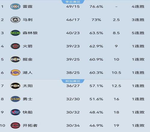 努努力,西部前三甲大有希望;掉队的话,残酷的附加赛大门正在招手。