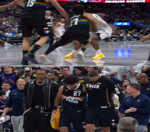 比赛进行到第二节末时,穆雷在防守沉退时左脚不慎踩到约基奇,左脚踝向外侧翻扭伤,随后穆雷捂着脚踝痛苦倒地,不得不返回更衣室。
