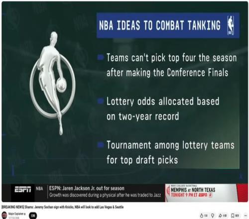 其实联盟一直都在刻意控制摆烂行为,不仅调整过抽中前四顺位签的概率,自从19年以来战绩最差的球队还从未拿到过状元签。