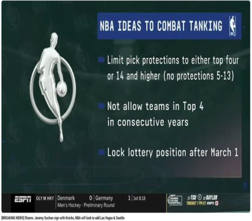 最初的三个想法是:限制选秀权保护条款、禁止球队连续两年获得前四顺位、3月1日后锁定乐透区排名。