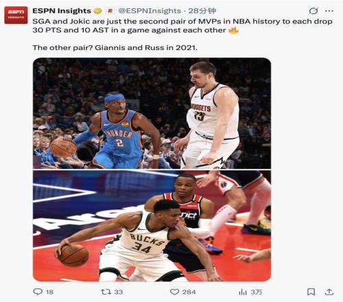5.NBA历史上只有两次敌队情况下30+10助攻,21年威少/字母,26年约基奇/SGA;