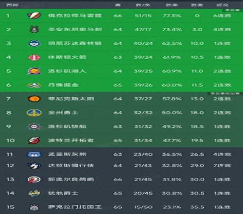 西部最新积分榜