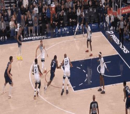 麦丹也试图对位莱纳德,但莱纳德一个高掩护挡开高寿的麦丹,面对戈贝尔,跳步三分——细节:莱纳德很喜欢跳步,拉球要跳步,强投要跳步,他的“卡帧感”,就在蹬地急起那一下的力道。