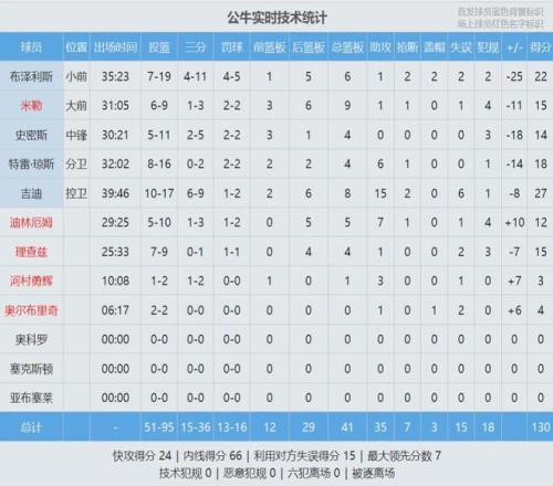 公牛这边,吉迪27分8板15助2断、布泽利斯22分6板2断2帽。公牛缺兵少将,第四节一直在追分,湖人赢得并没有那么轻松。河村勇辉替补出战10分钟,2投1中拿到3分3助攻。公牛篮板跟湖人打平,助攻还多3个,但15次失误太多了。