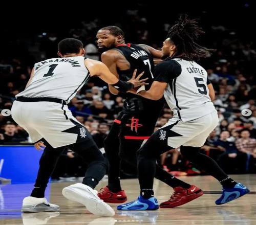 而且火箭防守端的问题尤为突出。球队在内线护框几乎为0,申京在篮下防守如同纸糊一般无力。面对文班亚马这样的超巨级内线,以及马刺高效的外线投射,全场命中21记三分,命中率高达53%,火箭的防守策略完全崩盘。马刺轻松拉开空间,多次打出流畅的传切配合,而火箭的协防和轮转迟缓,导致对手屡屡命中空位三分。杜兰特虽然努力在进攻端得分贡献23分,但防守端也难以完全覆盖马刺的进攻火力。