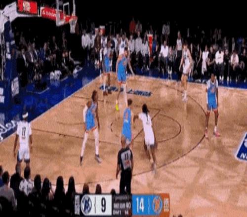 其中,小杨也迎着克林根贡献一记三分