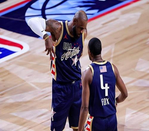 记者问道:你提到了和勒布朗-詹姆斯在一起的那个瞬间以及那张照片。在这样一个周末,这种时刻对你来说有什么样的意义?作为一名球员,能够在大家面前展现出那一面是一种什么样的感觉?对此,福克斯表示:那感觉真的太酷了。几乎我这一辈子,他都在打球。从我记事起,从我开始看球的时候,勒布朗就已经在这个联盟里了。对我来说,我在成长过程中其实并没有什么真正最喜欢的球员。我最喜欢的球员曾经是凯文-加内特(Kevin Garnett),在他退役之后,就真的没谁了。福克斯继续说道:你无法抹杀勒布朗为这项运动以及为这个世界所做的一切。对我来说,那是一张很酷的照片。尤其是看到我的孩子们,这种感觉真的太棒了。而且我有些朋友最喜欢的球员就是勒布朗。我认识很多人的偶像都是勒布朗。所以,那是一张非常棒的照片。