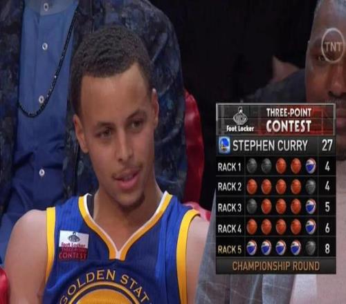 4、2015年夺冠时,库里击败的是队友汤普森,他在决赛一度连进13球,这是NBA三分大赛连续进球的第二长记录,同时27分也是三分大赛规则变更之前的最高分(由于老规则已经不会再使用,这个分数也不会再被打破了);