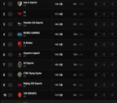 LPL的BLG第四高于KT,AL仍位居第六高于第九的JDG,而BFX在第十三还低于TES!