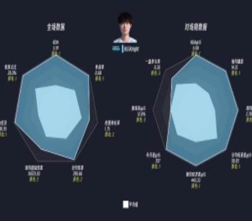 LPL登封组全场数据和对线期数据雷达图:BLG中单knight多项第一