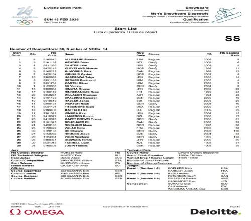 赛前出场名单公布,其中苏翊鸣第10位登场、葛春宇第25位、杨文龙第27位。