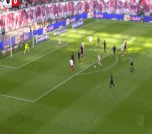 第77分钟,扬-迪奥曼德倒地情况下完成破门,莱比锡扳平比分,1-1