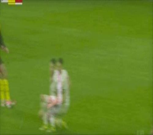 第89分钟,卡德起跳争抢头球,施洛特贝克被撞后痛苦倒地