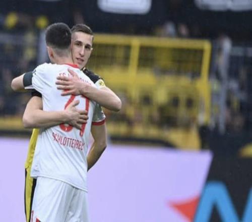 北京时间3月14日,德甲第26轮,多特蒙德2-0奥格斯堡。多特蒙德的尼科-施洛特贝克和奥格斯堡的凯文-施洛特贝克各自作为队长带领球队登场。
