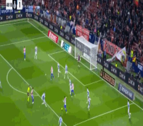 第59分钟,鲁杰里头球后蹭,卢克曼冲顶得分,马竞3-1