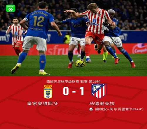 第90+4分钟,阿尔瓦雷斯读秒绝杀,马竞1-0皇家奥维耶多