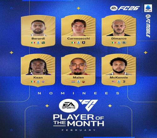 北京时间2月26日,意甲官方公布了2月联赛最佳球员的6位候选者,国际米兰的左后卫迪马尔科、罗马前锋马伦以及尤文图斯中场麦肯尼在列。