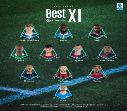 北京时间3月3日,意甲官方公布了联赛第27轮的最佳阵容,卢卡库、迪马尔科、帕夫洛维奇入选。
