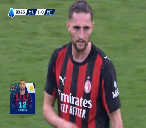 意甲第28轮主场迎战国际米兰的米兰德比中,米兰中场拉比奥在第80分钟因为犯规被主裁判黄牌警告。