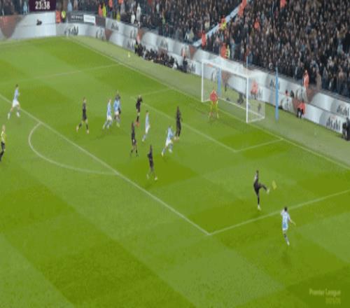 6分钟之后,塞梅尼奥再度建功,反击中左路带球推进到前场,随后将球交给了前插的奥赖利,后者小角度破门得分,将领先的优势扩大到了2球,第39分钟曼城抢断后迅速将球交给前场进攻球员,福登大禁区前沿分球,哈兰德哈兰德低射建功,将比分改写为了3-0,凭借此球哈兰德将自己的英超生涯进球数提升到了107球,追平了曼联名宿斯科尔斯,排名历史第31位。