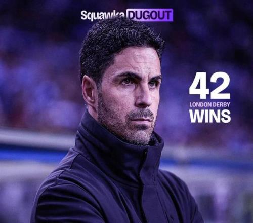阿尔特塔英超伦敦德比取胜42场,追平穆里尼奥仅次于温格
