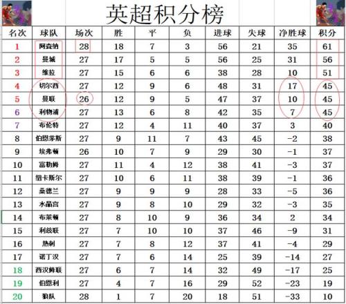 英超最新积分战报阿森纳大胜多曼城5分利物浦追上曼联切尔西