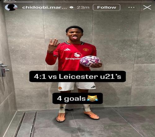 周一,当曼联一线队客场对阵埃弗顿时,小将奇多・奥比在U21对阵莱斯特城的比赛中狂轰4球。上赛季从阿森纳加盟曼联后,奥比就被球队迅速提拔至一线队,当时阿莫林的球队正苦于锋线无力。