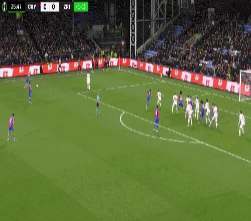 第36分钟,拉克鲁瓦禁区跃起头球破门,水晶宫1-0领先